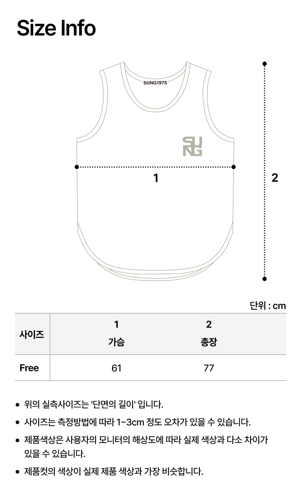 ※ 상품사이즈 치수는 재는 방법과 위치에 따라 1~3cm 오차가 있을 수 있습니다.