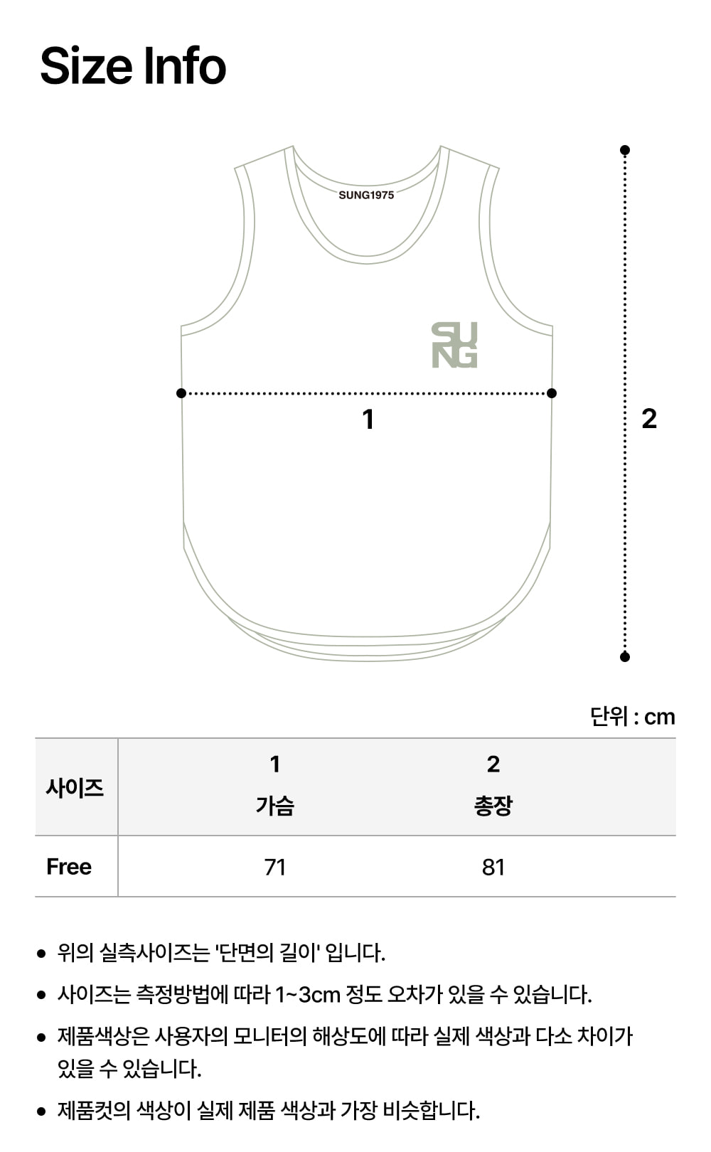 ※ 상품사이즈 치수는 재는 방법과 위치에 따라 1~3cm 오차가 있을 수 있습니다.